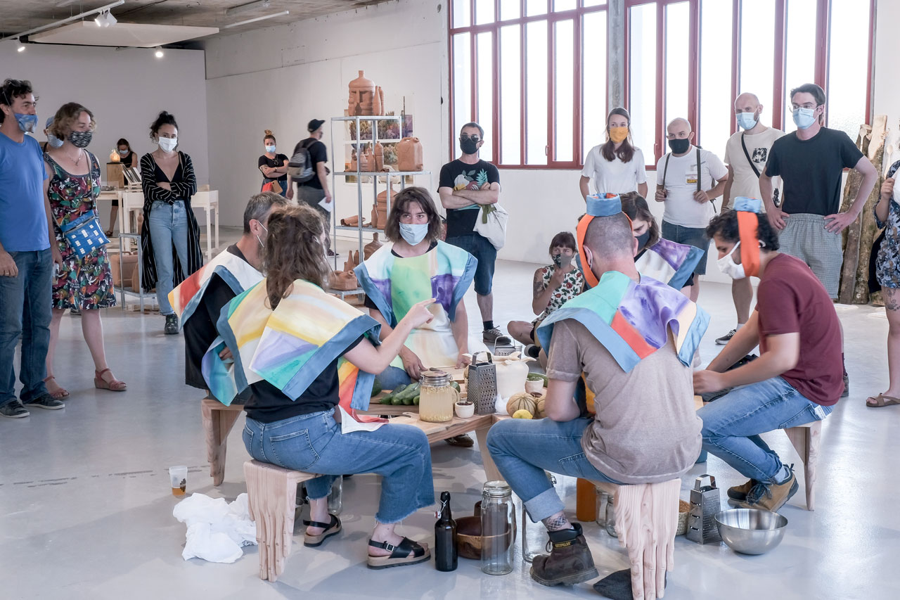 Après un printemps trouble, c’est avec joie et détermination que cinq structures rennaises s’associent autour d’un événement collaboratif qui inscrit les œuvres, les artistes, les publics et le territoire au sein d’un écosystème heureux. L’attention est portée au vivant et au mouvant, aux formes de coopération et aux rituels qui lient humains, nature et culture. Loin d’une conception de l’art comme système concurrentiel de production et de diffusion d’objets, des dispositifs collectifs invitent à partager repas ou boissons fermentées. D’autres œuvres évoluent dans le temps sous l’action des quatre éléments. Des représentations de paysages rappellent les liens complexes entre humains et leurs environnements. Une collection de vinyles et des objets en bois sculpté évoquent des rites passés ou à réinventer. Sans former de bloc homogène et figé, les différentes propositions font coexister différences, pluralités et points de rencontre, faisant surgir une énergie commune des frottements qui s’y opèrent.