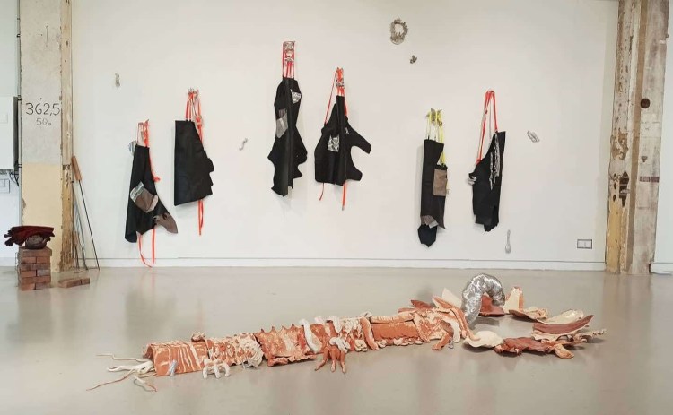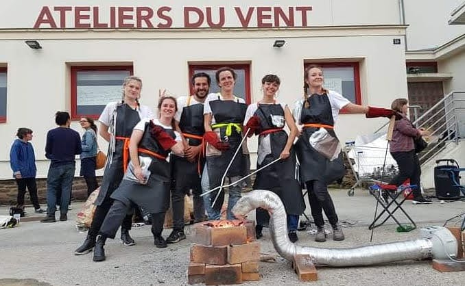 – atelier artistique mutualisé. Adeptes des tutoriels en ligne, ils et elles se sont retrouvé·es autour d’une envie commune d’expérimenter des matières et des savoir-faire que personne d’entre elles et eux ne maîtrisait auparavant. C’est dans la joie de l’auto-apprentissage collectif et par l’imbrication de leurs différentes sensibilités qu’ont progressivement émergé les formes du projet. En authentiques bricoleur·ses, elles et ils ont utilisé tout ce qui leur passait sous la main, et puisé de l’inspiration dans leur environnement le plus proche : la zone industrielle Route de Lorient avec ses quantités de tôle, de magasins de BTP et de motos, mais aussi de nombreux déchets volant. La première fonderie, à l’esthétique « punk-à-chien », permettait de recycler les canettes métalliques vides trouvées aux abords de l’atelier.